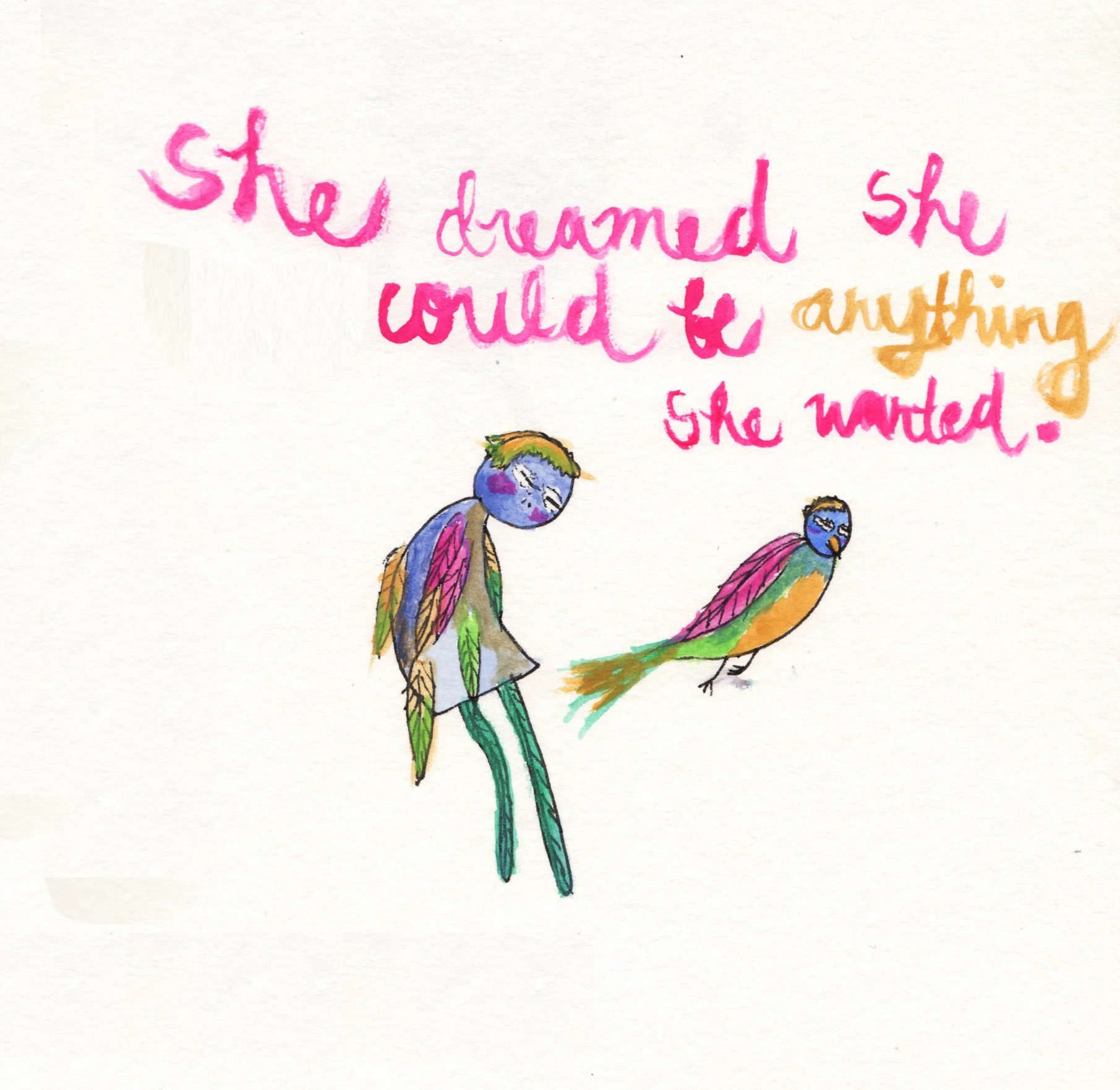 Being a kid usually means feeling limitless possibilities. When children hear that they can be anything they want when they grow up, they don't just hear a doctor or an actor or a fireman (or firewoman), they hear a dog, a plane, a bird, the sun...This little sketch was inspired by that, when the boundary between magic, imagination and reality are still beautifully blurred by innocence.